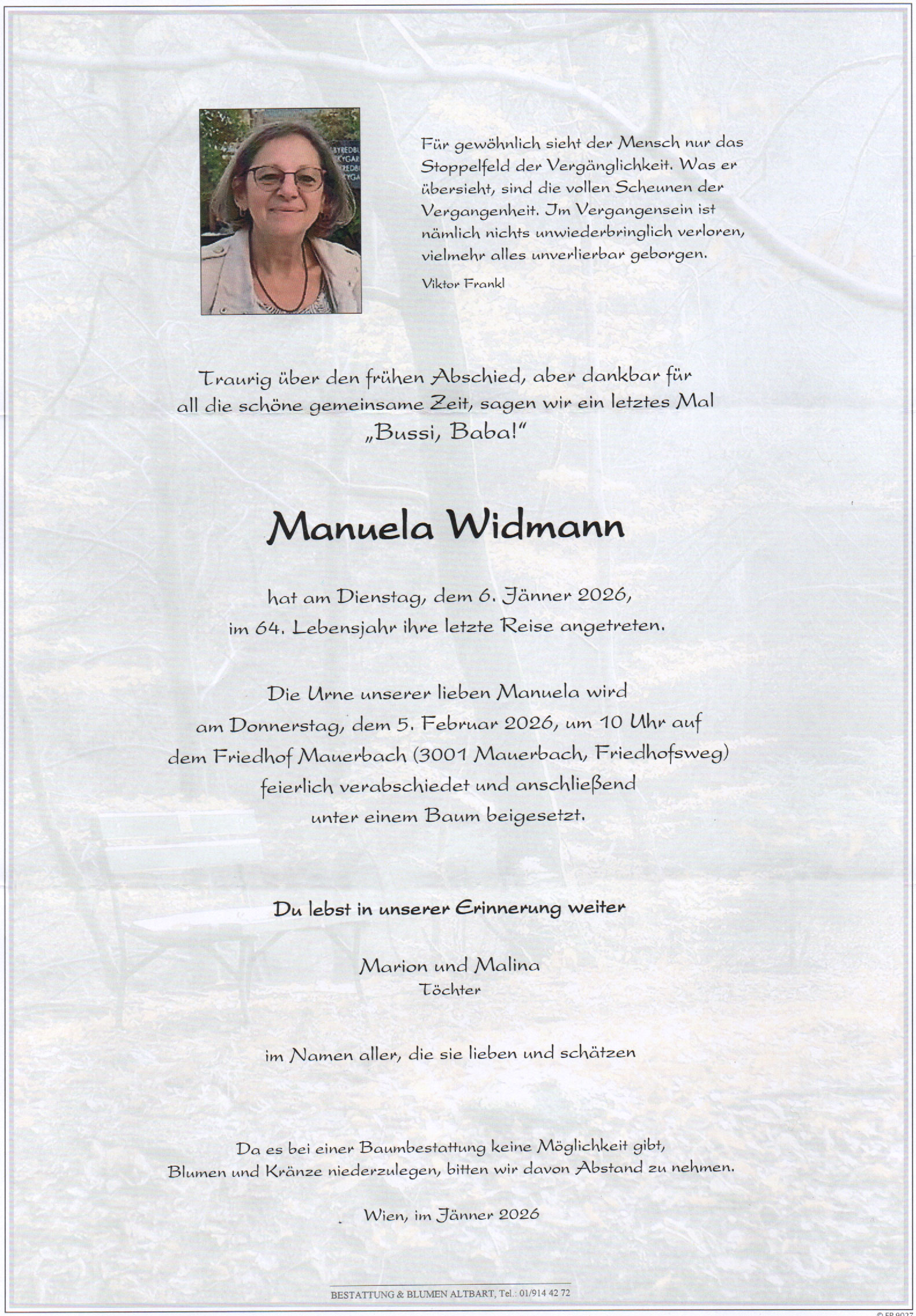 Unsere aufrichtige Anteilnahme gilt der Familie der Verstorbenen.